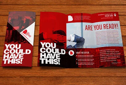 BASIC FOLDED BROCHURE: A basic brochure will include a double-sided, folded piece, either a bi-fold or tri-fold using your brand and content to tell your story to your audience.
